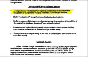 “Victory will be achieved when the average citizen is uncertain about climate science.”